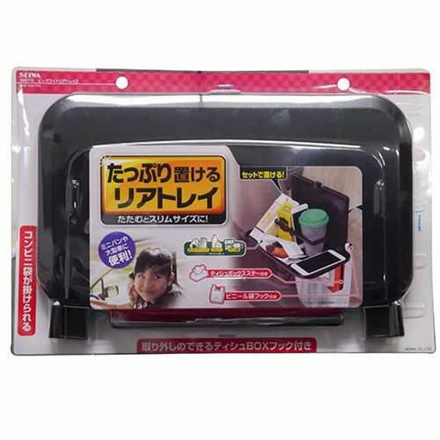 横幅345mmのワイド&薄型なリアシート専用トレイ。ドリンクホルダーとしても利用可能。