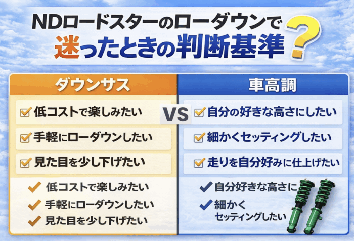 NDロードスターのローダウンで迷ったときの判断基準