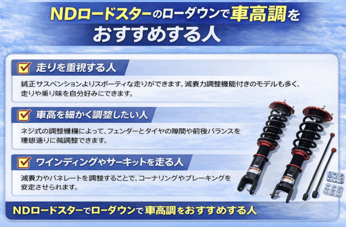 NDロードスターのローダウンで車高調をおすすめする人