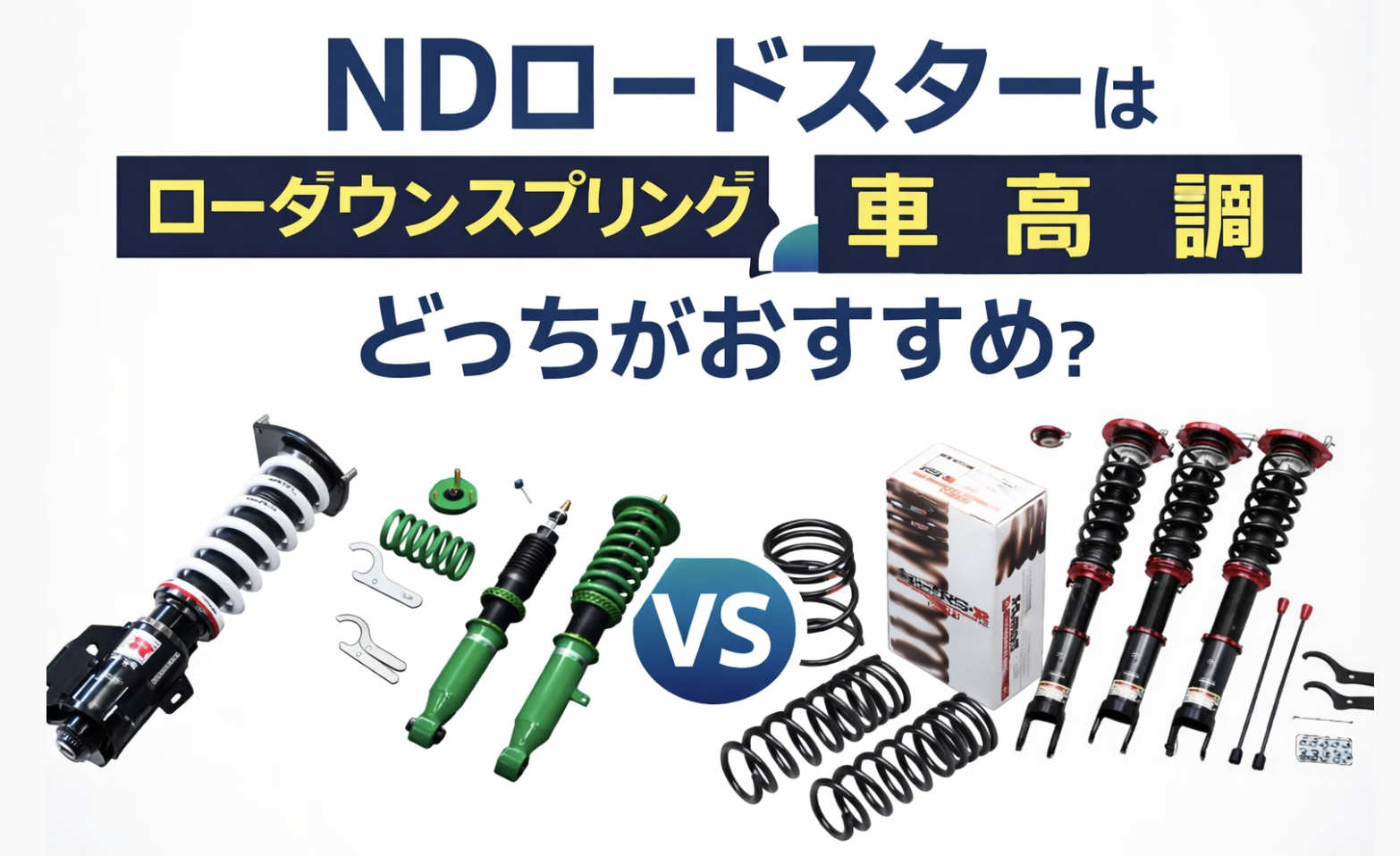 この記事では、NDロードスターをローダウンする場合、ダウンサスと車高調どっちがいいのかを比較検討していきます。