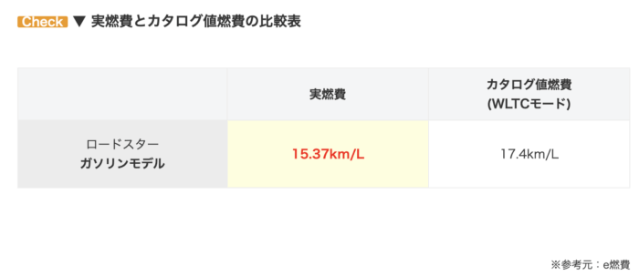 であることから、ロードスターの15.85キロはとても優秀であるといえますね。